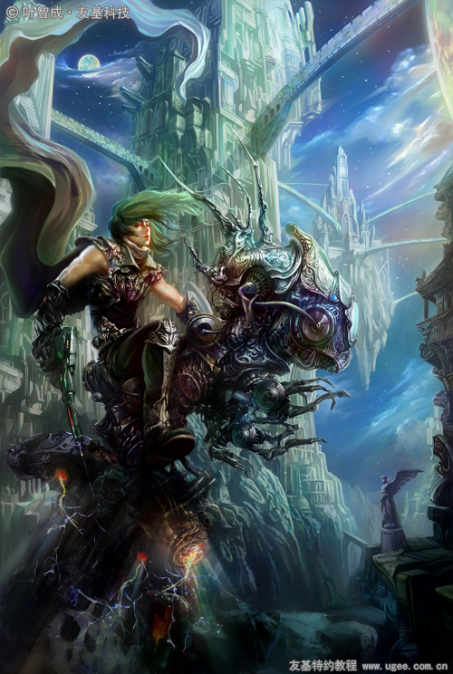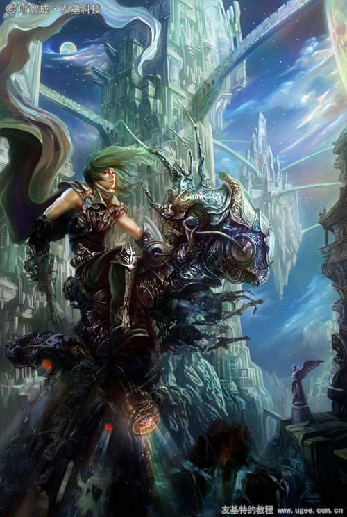 这张作品终于完工,一个简短的教程我想还是很难把所有的东西说得很清楚。但真正喜爱绘画的人 还是可以通过大图得到些知识,如果大家因为我的这张作品得到了些东西并使你们进步了这是我的 荣幸。我认为时下数码绘画艺术重要的不一定是手绘能力,甚至不是对软件的认识深入与否,重要 的还是设计上的问题。感觉设计是最难提高的,我在这个教程里面着重讲的也是思路上的问题,如 何创作一个我们都没见过又必须表现出来的东西,是创作的大问题,好在这个强大的网络时代把我 们没见过的东西都呈现出来,把那些聪明极致的发明创造通过互联网呈现给我们,供我们逐一挑选 ,我想这才是数码绘画超出传统绘画又一个有力的因素,也使很多画画不好的人可以很快掌握这样 的能力。同时也是做这个教程的意义所在了。当然也希望一些高手可以通过网络对我的作品做些剖析和指导。谢谢大家。