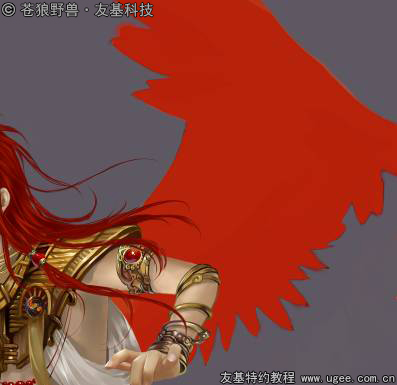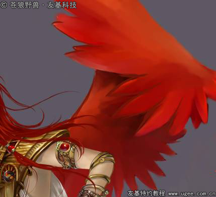 4.细化翅膀 接下来是细化翅膀了,朱雀是火神兽,当然都是以红色为主。