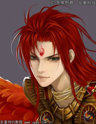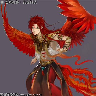 之后简单画出明暗关系,再深入刻画细节。 图4-3 5. 绘制火尾 为神兽朱雀加上火尾~~~再看下整体效果先。 图5 6. 整体加高光 用白色给人物的受光面加上高
