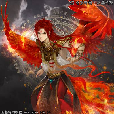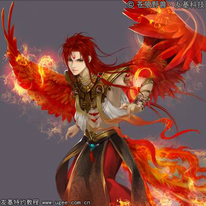 5. 绘制火尾 为神兽朱雀加上火尾~~~再看下整体效果先。