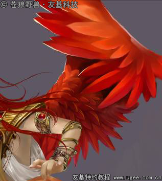 7.细节处理 按照发型来看,翅膀的后面还有飞舞的头发,所以别忘记加上。注意这个发丝图层要在翅膀图层的后面。在PT中的刻画就差不多完工了,保存PSD文件再导入PS中完成最后效果的处理。