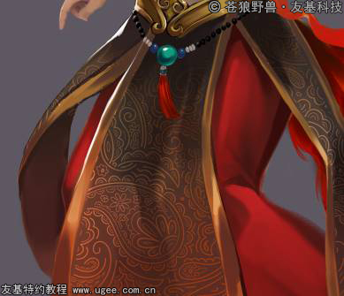 8.素材贴图 在网上找一个古典图案素材给衣服的裙摆贴上花纹,PS素材花纹网上有很多,当然有耐心的也可以自己来画~