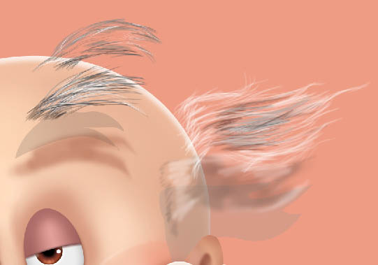 将毛发理解成五层:阴影(带有皮肤的光泽)、底层毛发、中层毛发、上层毛发、高光区。然后用画笔加模糊工具绘制即可。