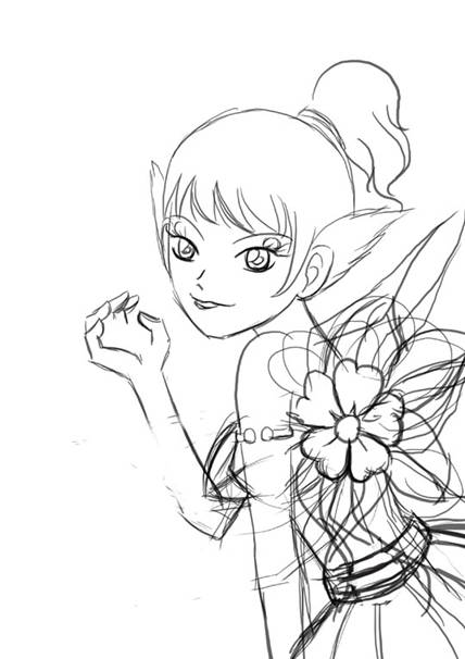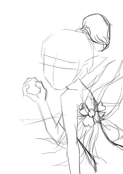 步骤一:在头脑里构思出大概的人物轮廓,这时不要拘泥细节,只要快速的把头脑里构思的画面勾画出来即可。