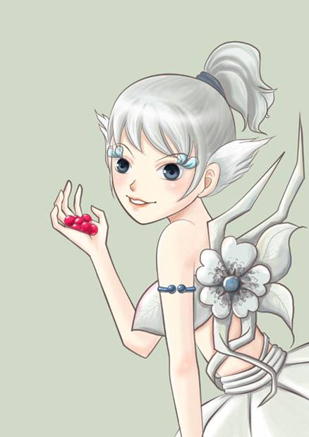 步骤6:整体深入后,我们开始从局部着手。那就先从精灵漂亮的脸蛋开始吧!深入的刻画她的五官,让她看起来清透粉嫩。