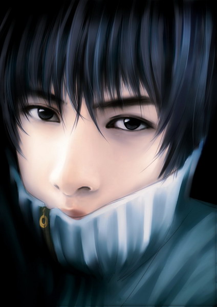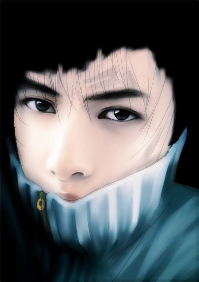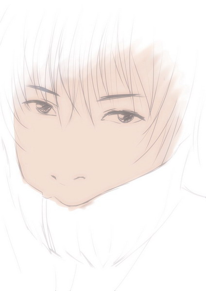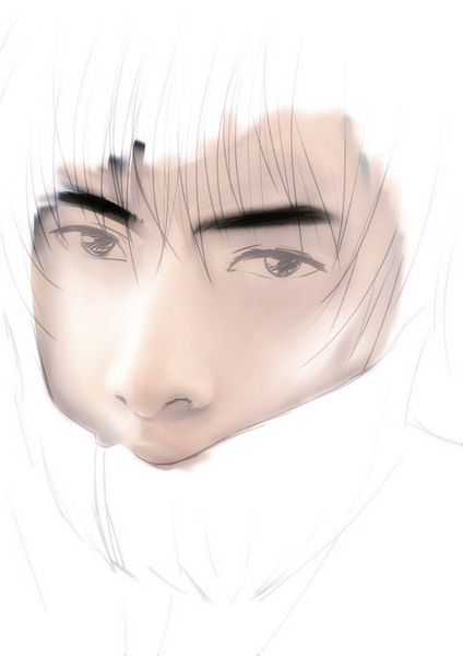 5.使用喷枪调小细画出人物的五官。也可以使用覆盖铅笔 不过铅笔画出来的线太实,画完要在进行柔化,所以我还是喜欢用喷枪
