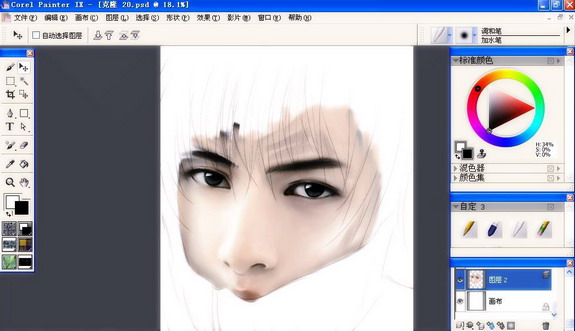 1、新建图层用覆盖铅笔打出草稿。这里你就会感觉出绘影2数位板细腻压感所带来的好处。个人喜欢用覆盖铅笔,感觉比2B用着更舒服些。