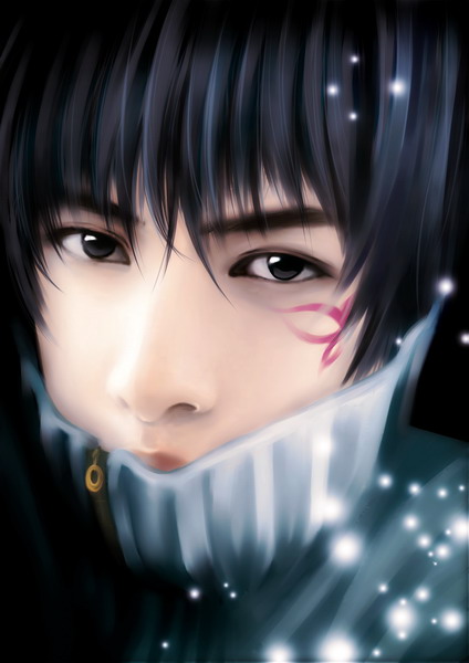 8.调整细节,隐藏线稿层 。注意头发的底部发丝和衣领处,给脸加上花纹装饰一下