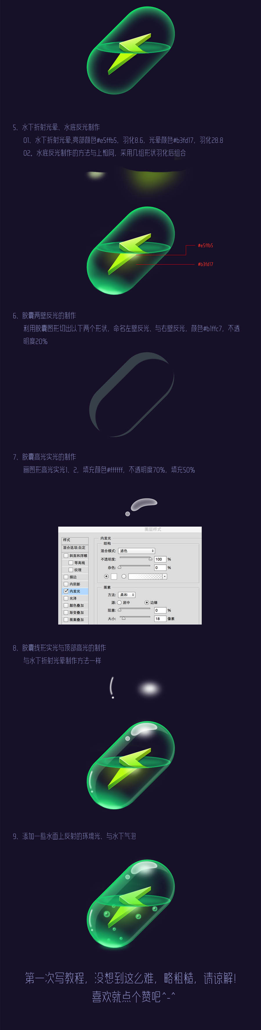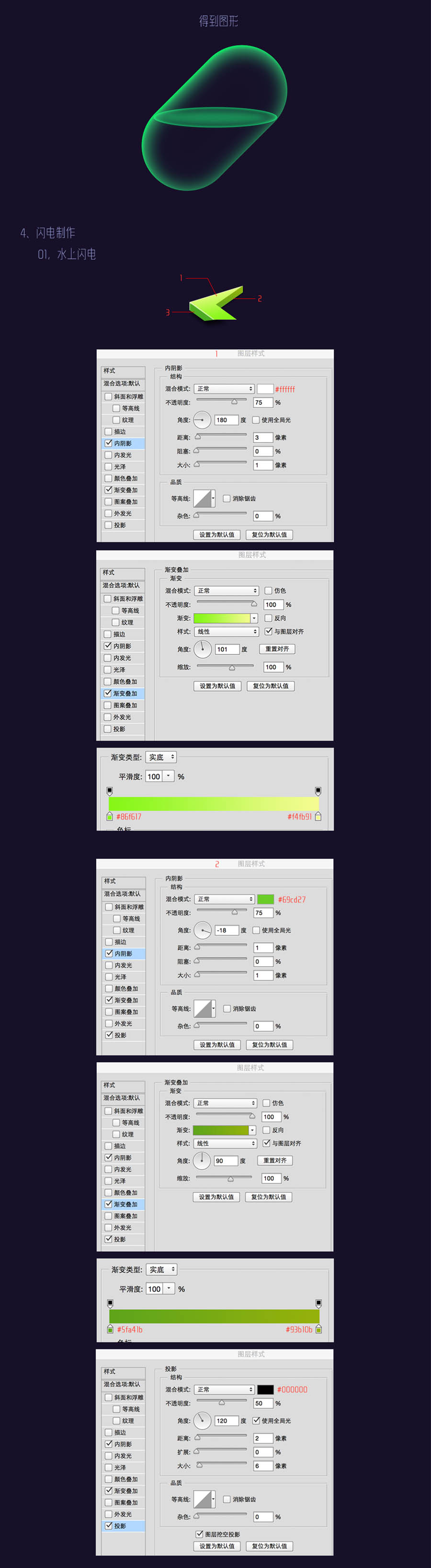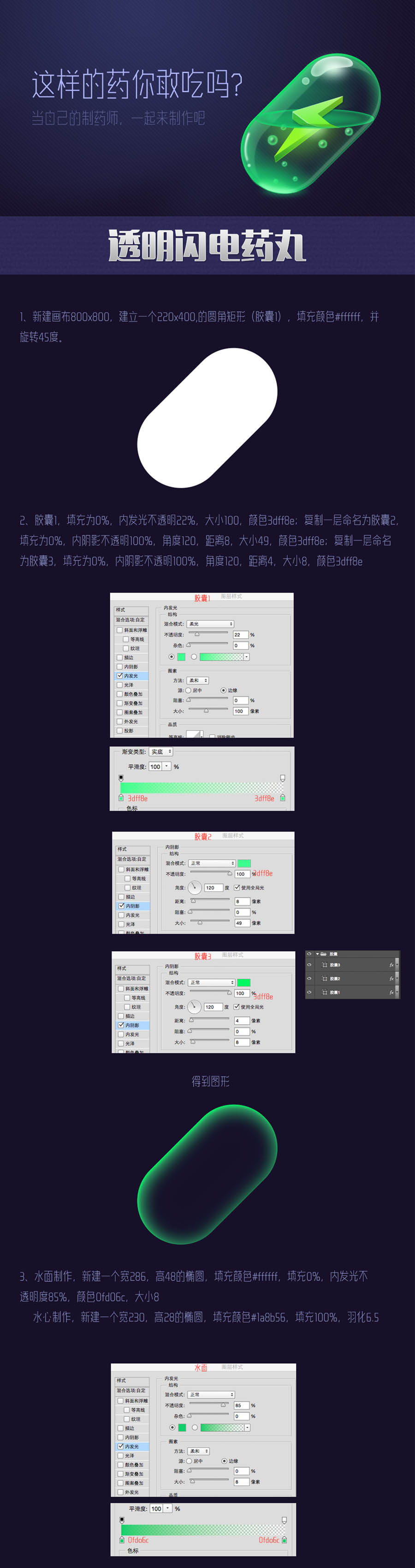 PS绘制绿色透明风格的闪电药丸