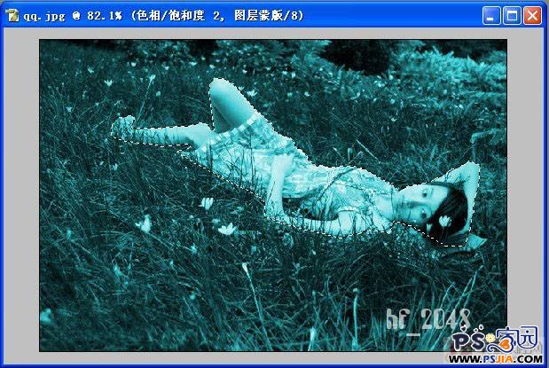 先看效果图 步骤: 1.首先打开原图,执行图层/新调整图层/色相饱和度,把着色打勾,通过调色相和饱和度确定图片的整体色调 2.在色相/饱和度调整图层旁的蒙板中用柔一点的黑色画笔涂抹或用套索工具选取后羽化填充黑色. 3.现在人物有太鲜明了,