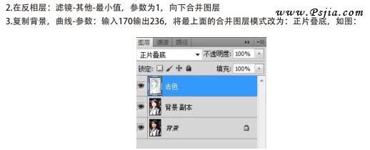 2、对反相图层执行:滤镜 > 其它 > 最小值,参数为1,确定后向下合并图层。