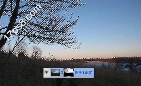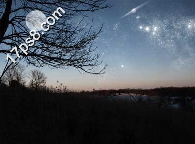 8、把这几层群组,调出刚才保存的选区,添加蒙版,使星云只出现在树枝的后面。