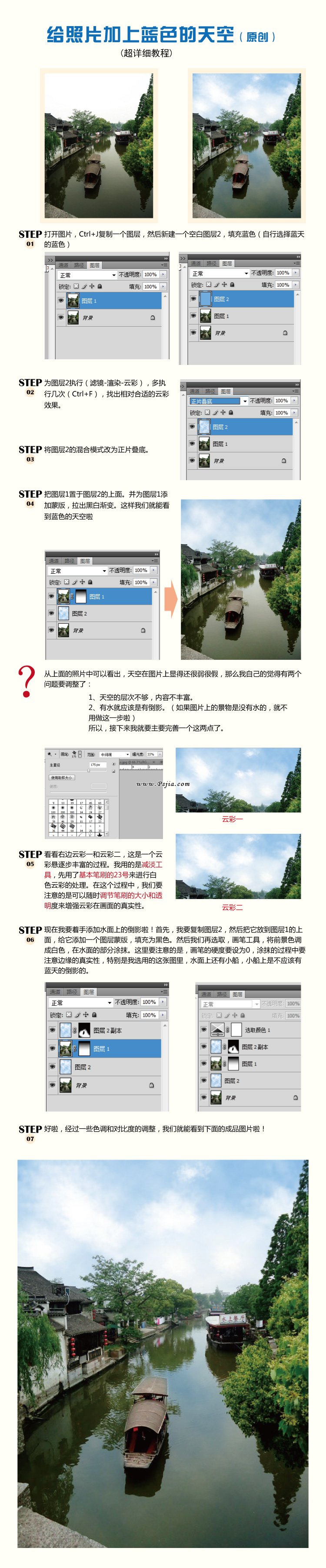 前些天去西塘转了转,可惜天气不是很好,所以拍回来的照片大多没有什么蓝天白云,于是心血来潮想自己加个天空出来。觉得加来还不错,就弄了这么个教程,也不知道和别人有重复
