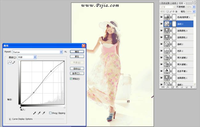 7、然后使用可选颜色工具调整黑色通道使头发更有层次,衬托肤色。 8、用曲线来拉开人物与背景的空间感。 9、然后降低饱和度使人物脸部肤色与衣服的