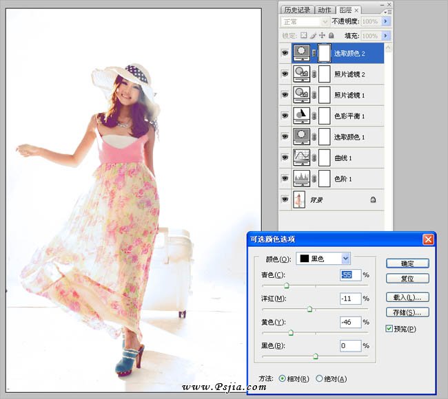 7、然后使用可选颜色工具调整黑色通道使头发更有层次,衬托肤色。