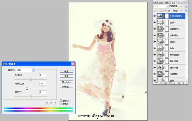 9、然后降低饱和度使人物脸部肤色与衣服的颜色融和。