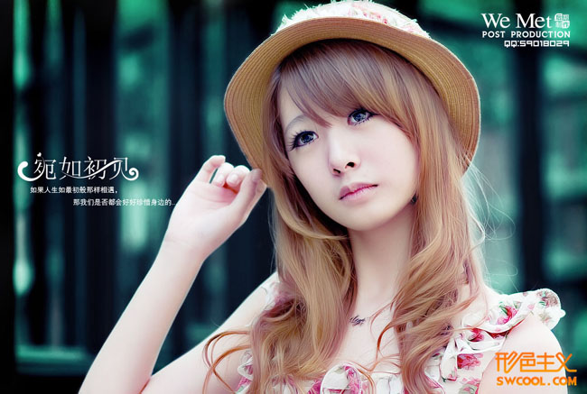本教程参考图较少,不过调色过程还是挺多的。首先需要美化人物部分,简单的磨皮及润色即可。然后再重点美化背景部分,根据人物肤色选择好相应的背景色,最好是暗色,可以更好