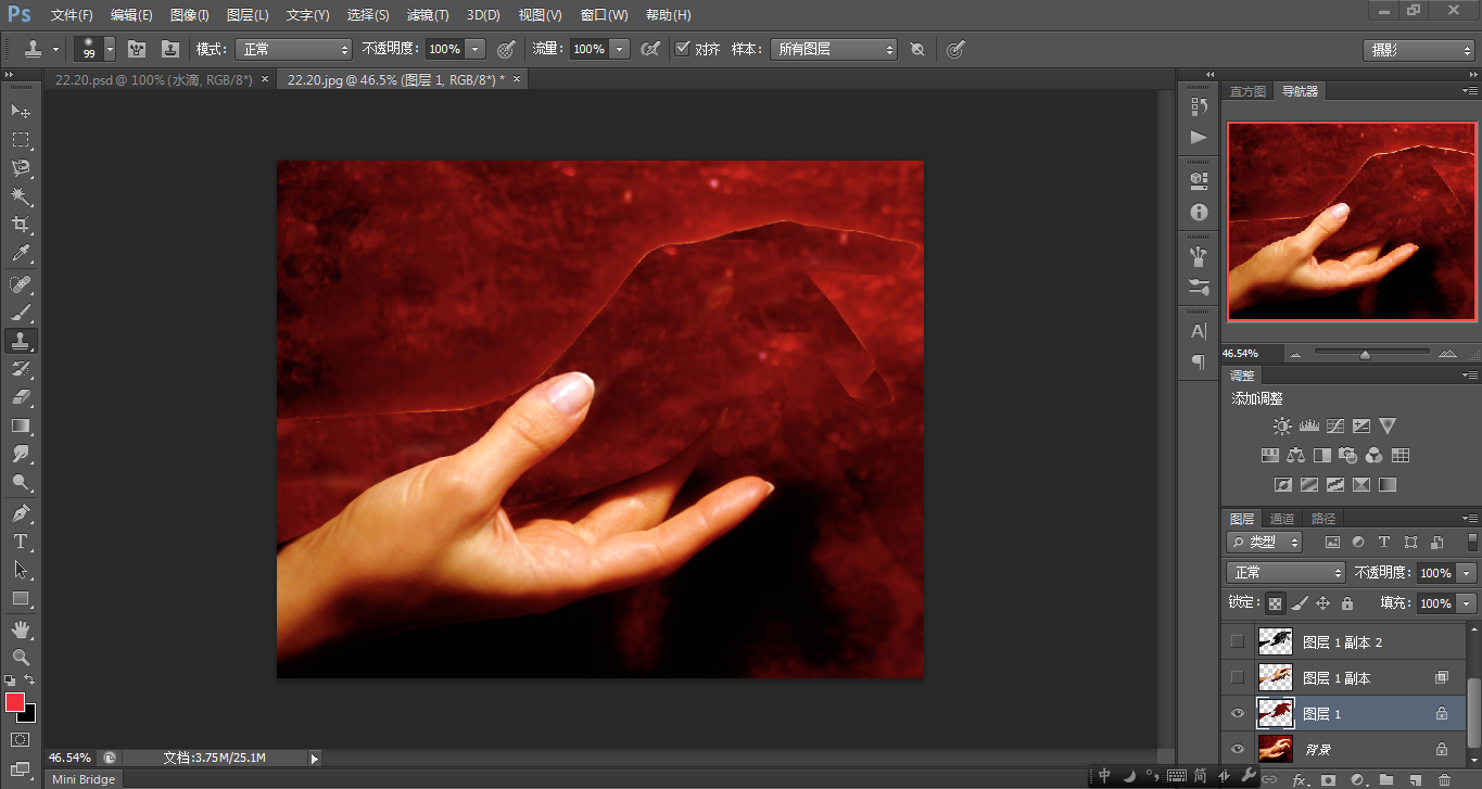 显示所有图层,选择图层1副本1,设置混合模式为明度