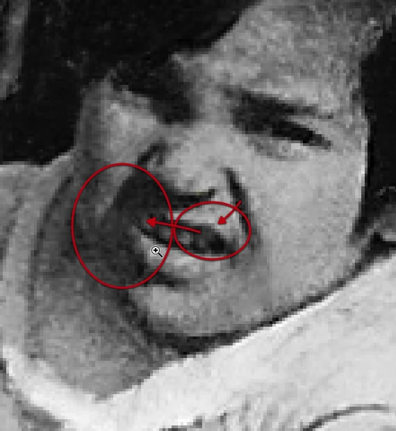 40、这孩子嘴唇需要修复一下,我们可以用这孩子上嘴唇的右面来修复他的左面。