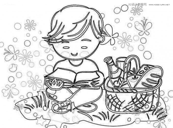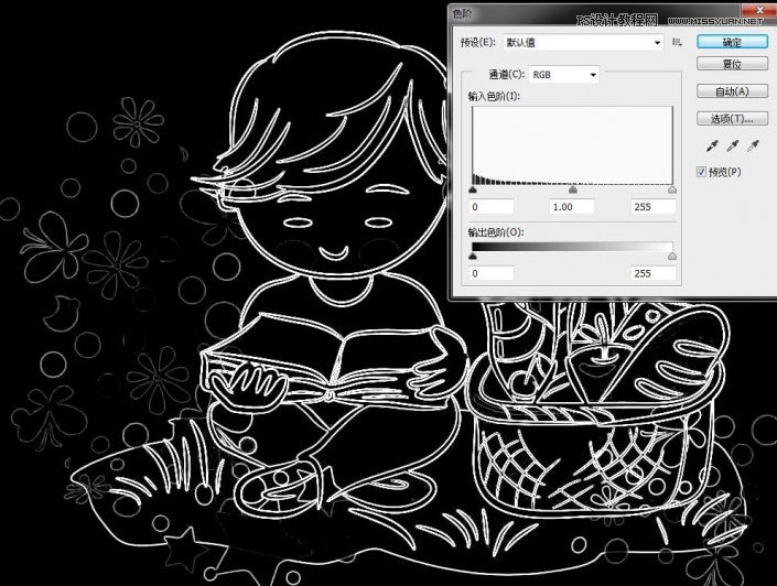 5.线条有点弱,并且整体有很多杂色,我们利用色阶工具调整暗部和亮部对比,去除杂色让线条也更完整。