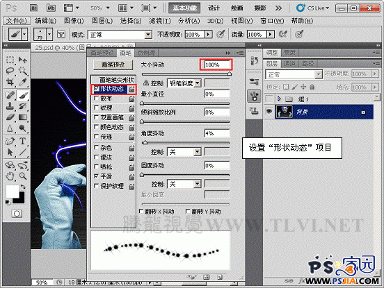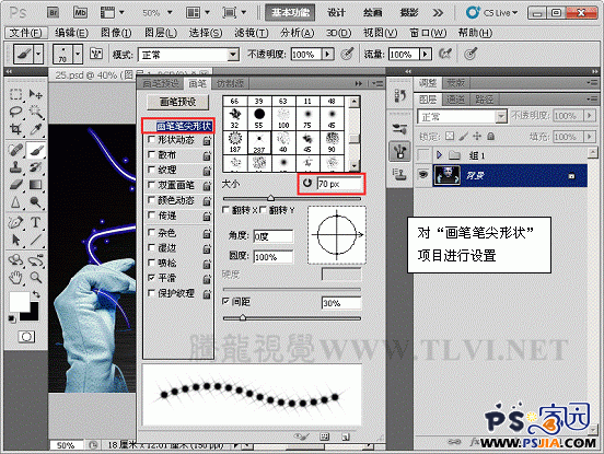 Photoshop CS5利用画笔设置,打造璀璨星光文字(3)
