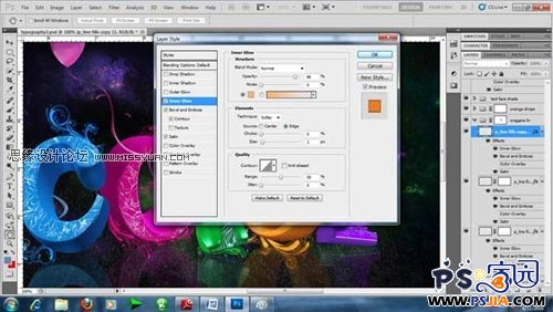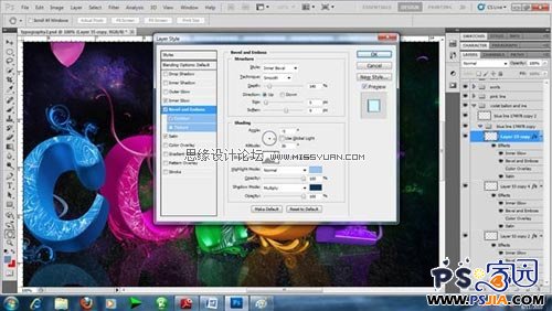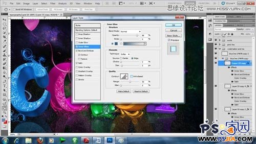 | 50、至于字母“L”,画一些紫色的线条,图层混合选项如下图所示: |