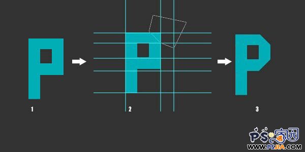 4、我们先从P字开始,首先我们要把P字的横的高度和竖宽度设置成一样然后把一样的。将P字栅格化,右键选择P字>选择栅格化文字。然后新建个图层,新建个矩形,然后放到P字上去。然后一次把宽和高调好。然后将在制作横的时候可以把矩形的透明度调低点。 |