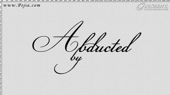 让我们添加文本。我们需要一个书法风格的字体,我使用的是Champignon。首先输入 Abducted 。(图04)