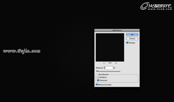 现在去滤镜>杂色>添加杂色。使用2%,高斯分布并确保你选中了单色。给渐变添加杂色是非常棒的因为它能使渐变更加微妙。(图03)