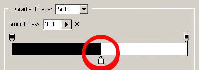 在“Gradient Overlay”对话框中“Gradient”选项的渐变条单击一下,出现“Gradient Edit”对话框,渐变条下有两个“color stop”(分别双击它们,可修改成你所需要的颜色,增加“color stop”你可以得到三色字甚至多色字),这里就用默认的黑白两色为例。然后,把这两个“color stop”向渐变条中心位置拉拢,直至重合在一起(图3),