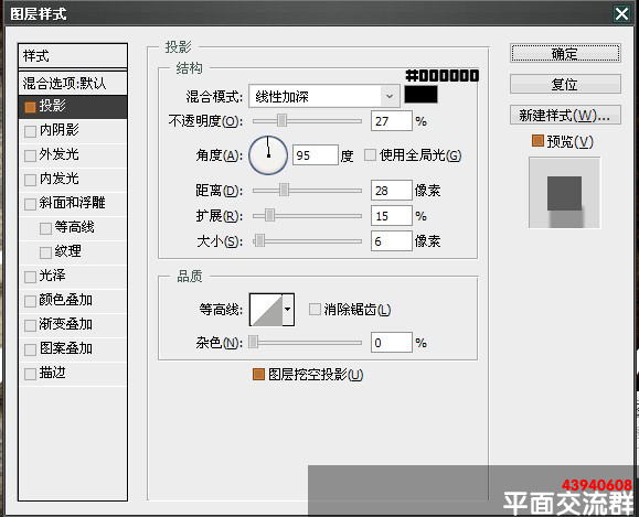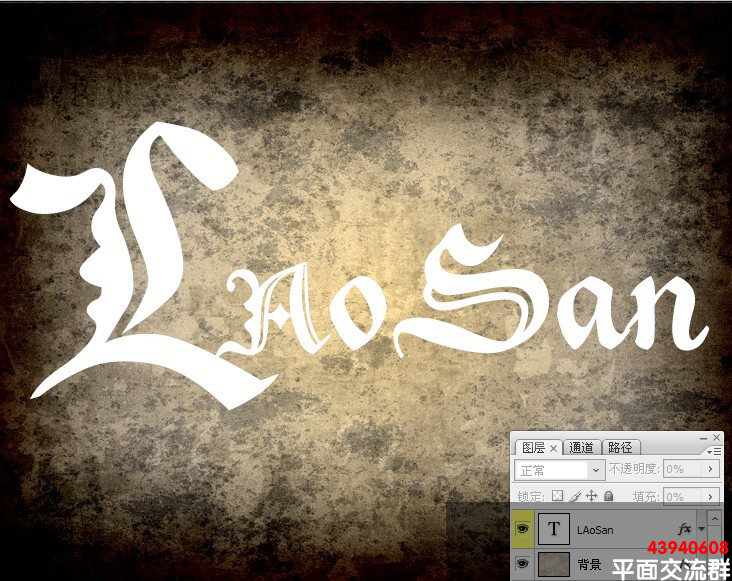 4.设置好 我们得到下图效果 5.打上我们需要的文字,这里我用到的字体是【xenippa】大家可以到网上下载到 6.添加字体样式,设置如下