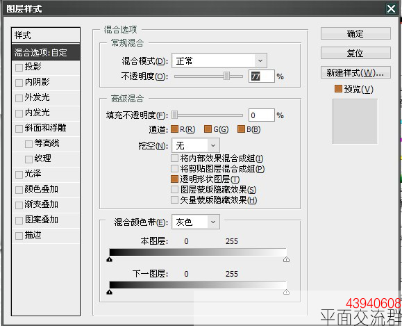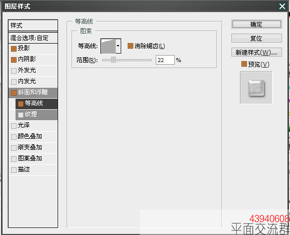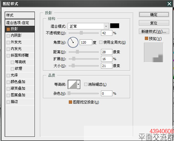 7.复制laosan文字图层,放到laosan图层下面,你懂得。添加图层样式,设置如下