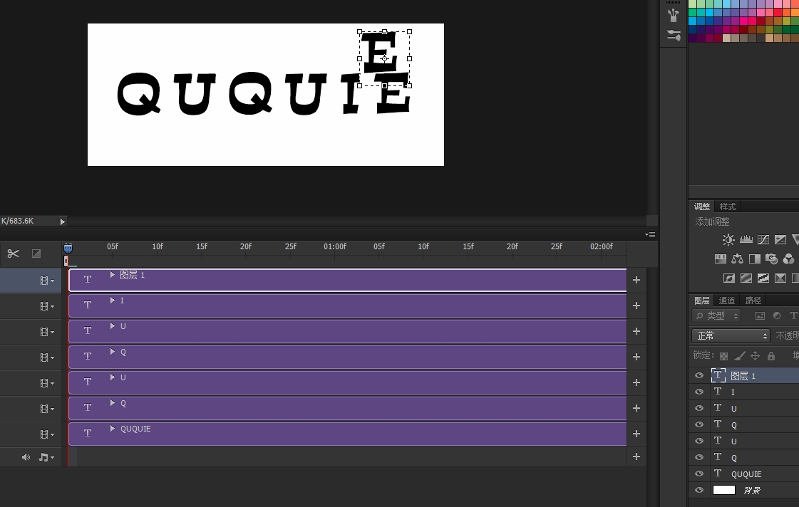 点击创建时间轴按钮,出现如图 把这玩意儿向右拉,让时间轴更详细一点 然后逐个建立文字并移动,让新文字和模版文字逐个重合,如图。 之后隐藏掉模