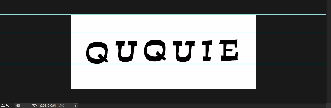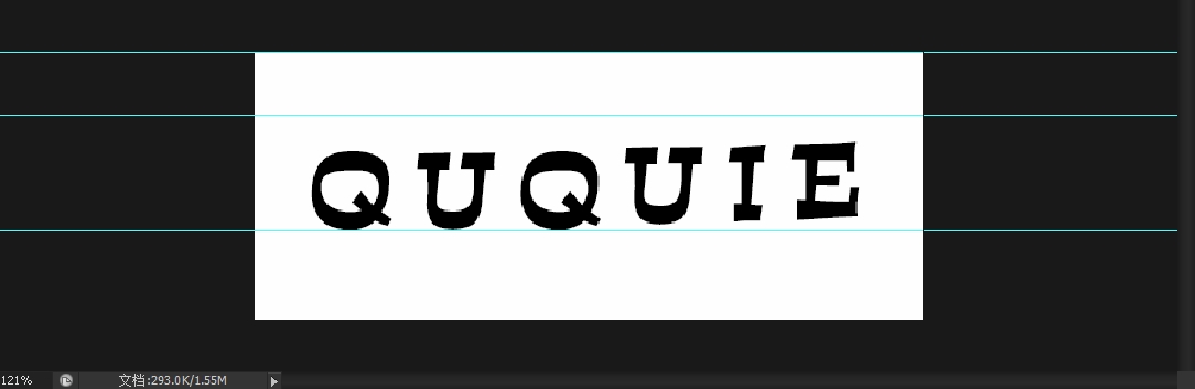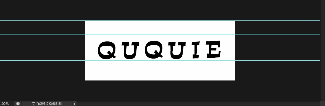 然后逐个垂直向下移动文字,使文字刚好触碰到第三条参考线(以下简称地板)。