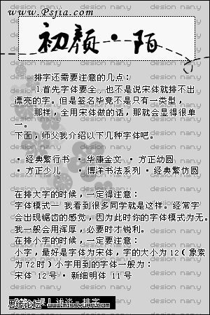 实用技巧排字教程(2) 2013-02-01 17:46 来源/作者:思缘论坛/未知 己被围观 次 (责任编辑:PS家园网) 共2页 上一页12下一页 *PSjia.COM 倾力出品,转载请注明来自PS家园网(www.psjia.com) 分享到: 加群交流 设计理论 PS快捷键大全 免费PSD素材 常见问题解答 标签(TAG) 上一篇:五种排字常用技巧 下一篇:简单实用排字教程 更多精彩内容 PS制作边缘发光的纹理字教 用PS制作海报常用的复古字 ps制作时尚炫酷的雷电文字 PS制作雨天在玻璃水雾上写