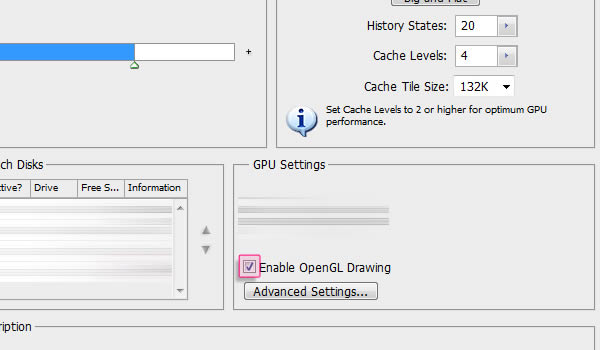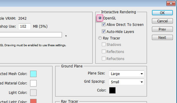 此外,去编辑>首选项> 3D,并确保OpenGL的交互式渲染下启用。