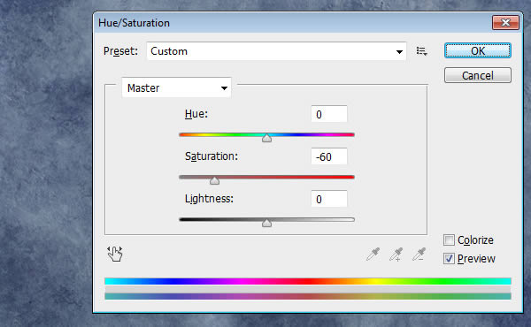 去图像>调整>色相/饱和度,改变饱和值-60。
