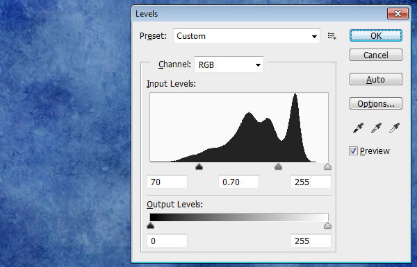 打开更多垃圾VI的纹理然后去图像>调整>色阶,更改阴影值70和伽玛值至0.70。