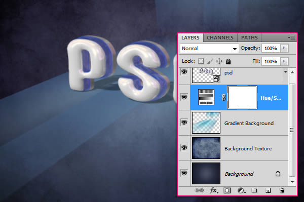 确保调整层是三维层以下,这样它会影响所有的3D文字层以外的层。
