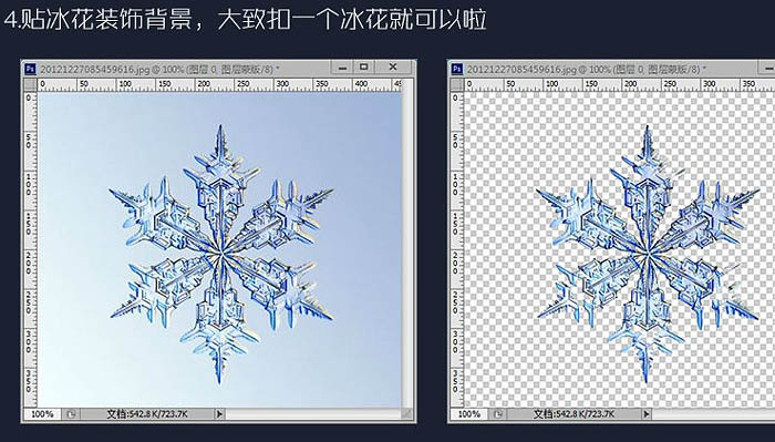 4、贴冰花装饰背景,打造抠一个冰花就可以了。