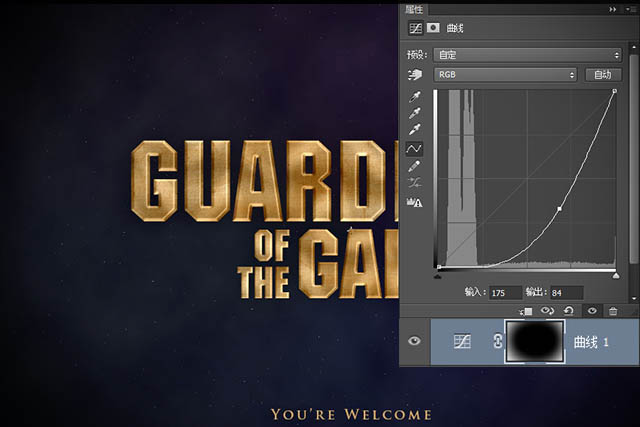 | 16、创建一个小标语,字体为Tragan Blod,颜色为#DAB277,就像电影海报里的那样,我写的是“You’re Welcome”。 |