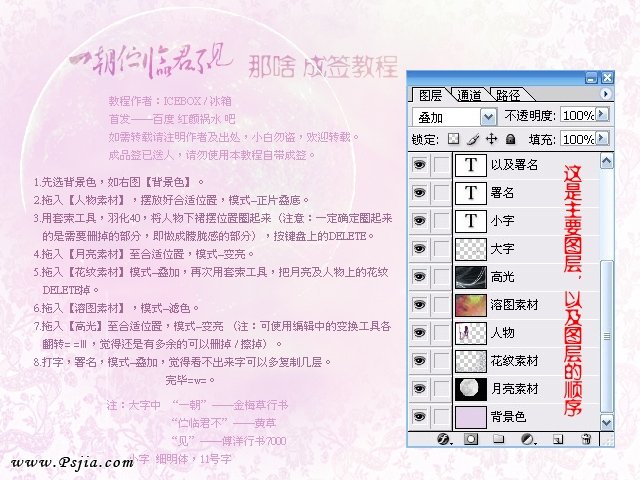 粉色浪漫古风签名制作 2011-02-11 00:41 来源/作者:网络收集/------[唔] 己被围观 次 效果图: 教程: 素材包下载 效果图: 教程: 素材包下载 (责任编辑:PS家园网) *PSjia.COM 倾力出品,转载请注明来自PS家园网(www.psjia.com) 分享到: 加群交流 设计理论 PS快捷键大全 免费PSD素材 常见问题解答 标签(TAG) 上一篇:暗调红色古风签名制作 下一篇:非常适合新手学习的简单动漫成签制作 更多精彩内容 PS教程!弥散光设计!3种 PS制作梦幻场景签名教程 PS签名教程-如入云端动漫 PS签名教程-微光的城市动