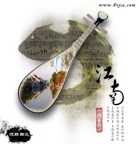 本教程介绍非常有江南韵味的签名图片制作方法。当然制图之前,我们需要对江南的水土文化有一定的了解。然后再搜集相关的素材来构思及构图。