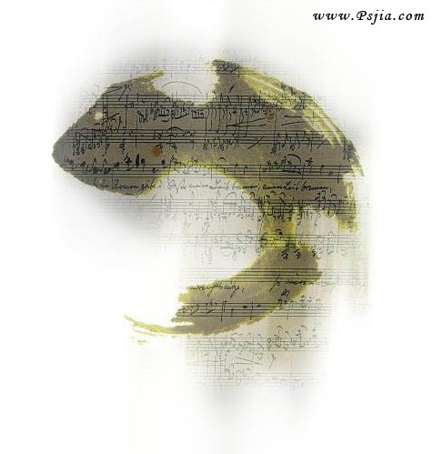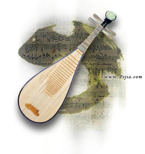 6、按CTRL+F三次,降低其透明度为65%,将有些多余的部分把它擦去,如图。 7、把乐谱放进去,柔光,也是将多余的部分擦去。 8、把琵琶勾出,放进文件里