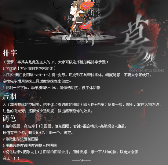 由于框框的制图步骤较多,而且教程是赶工做的,所以会有一些写得不清楚的地方,希望大家包涵,有看不懂的地方可以PM框框询问~
