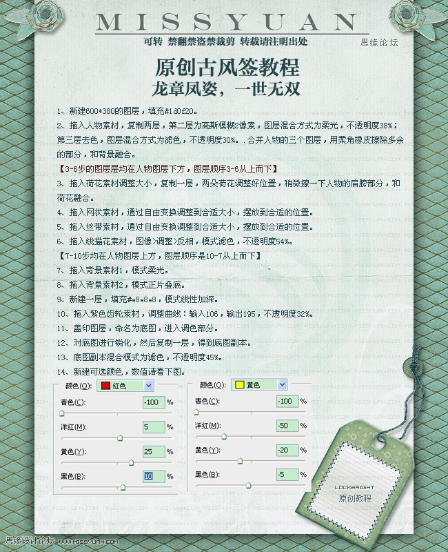 古风CG龙签制作 2013-04-10 17:20 来源/作者:思缘论坛/未知 己被围观 次 效果 教程 素材 效果 教程 素材 (责任编辑:PS家园网) *PSjia.COM 倾力出品,转载请注明来自PS家园网(www.psjia.com) 分享到: 加群交流 设计理论 PS快捷键大全 免费PSD素材 常见问题解答 标签(TAG) 上一篇:古风水墨签名图制作 下一篇:绿色调古风帅哥签名图制作 更多精彩内容 PS教程!弥散光设计!3种 PS制作梦幻场景签名教程 PS签名教程-如入云端动漫 PS签名教程-微光的城市动